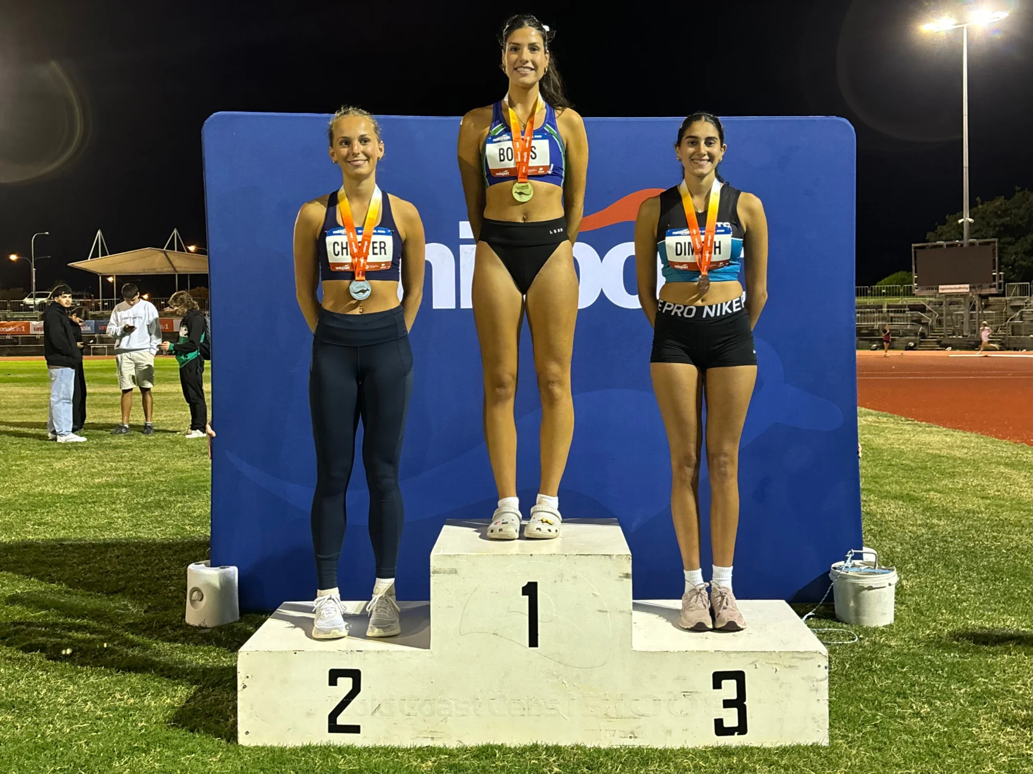 Victoria’s Tiana Boras (Deakin University) was the first to etch her name into UniSport history, soaring to 13.06m in the women’s triple jump. The leap not only secured gold but also broke the previous UniSport Nationals Athletics Championship mark, cementing Boras’ place among the event’s elite.