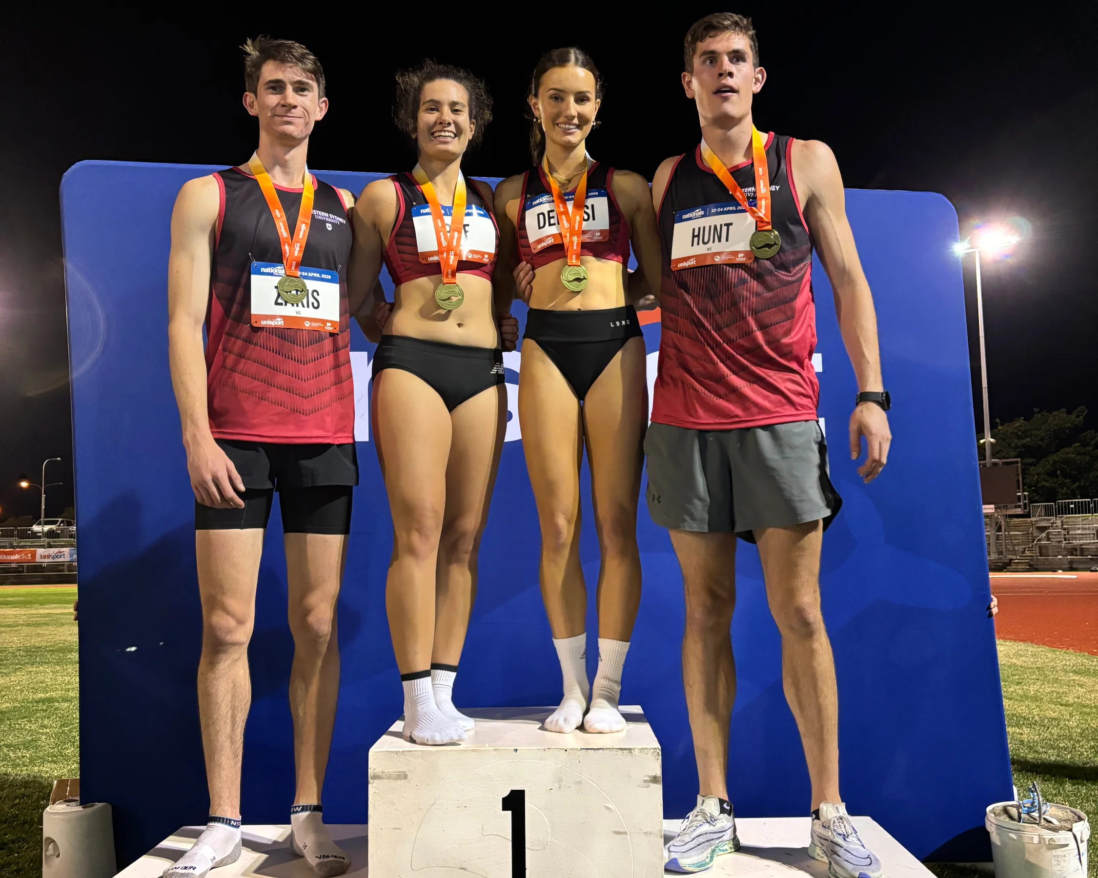 Later in the day, the crowd erupted as the Western Sydney University 4 x 400m mixed relay team delivered a showstopping performance, clocking 3:32.24 to set a new championship benchmark and claim gold. Their speed, teamwork, and execution capped off an impressive day of athletics action.